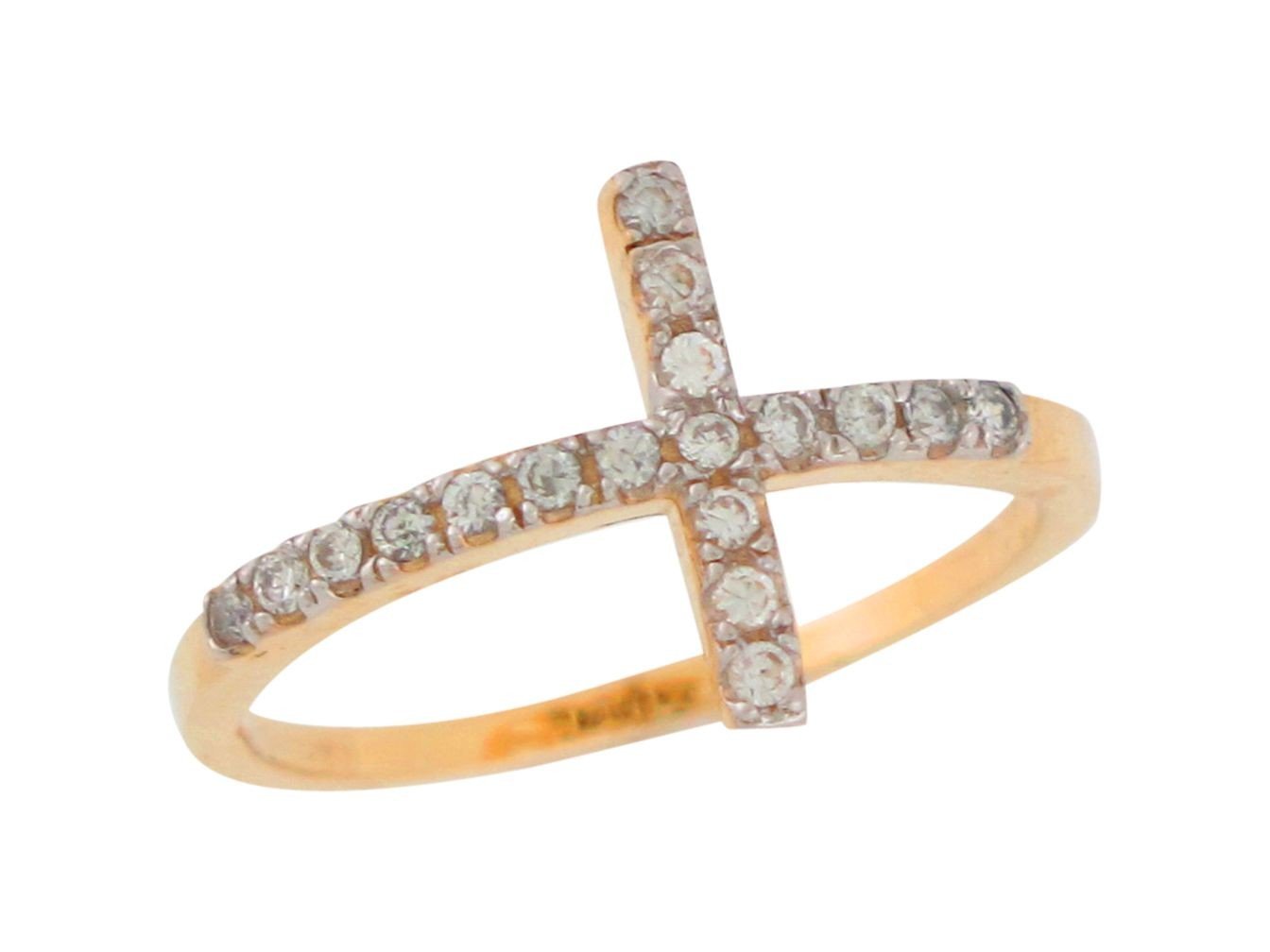 An eye catching cross is incorporated into the band of a ladies ring that has been made using fine 10k or 14k Two-Tone Gold. The cross also features dazzling White CZ gems that cover it in its entirety. This makes a perfect gift for that religious person in your life that you would want to show your love for. Our rings are proudly handcrafted in our California factory.