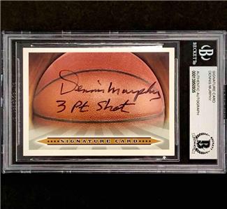 This basketball card is signed in blue by Dennis Murphy.