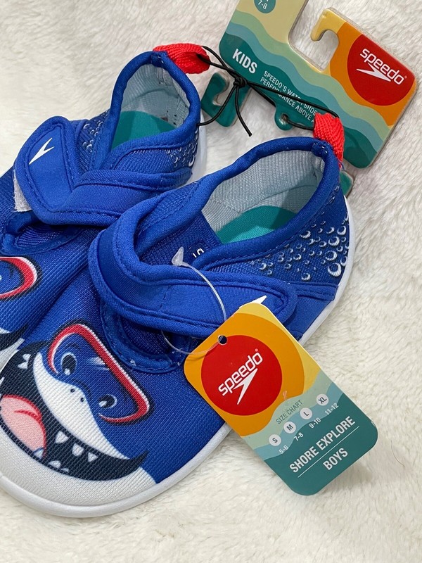 New Boys Speedo Shore Explore Water Swimming Swim Shoes Blue Shark Medium 7-8