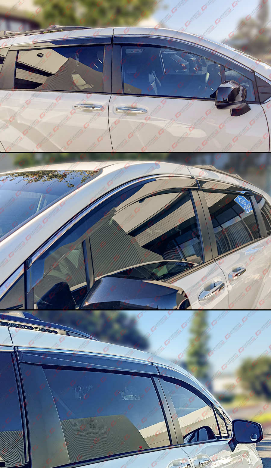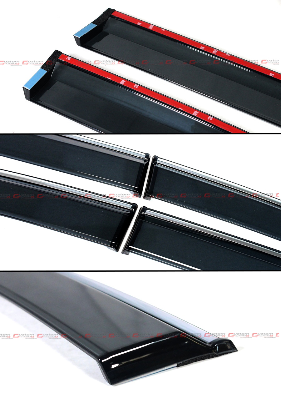 - Premium Quality Low-Profile Design JDM Smoked Tinted Window Visors With Chrome Trim.
