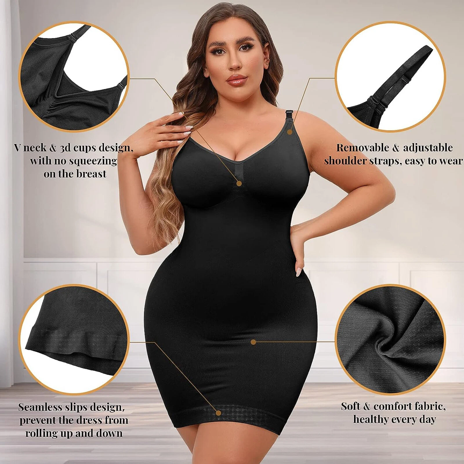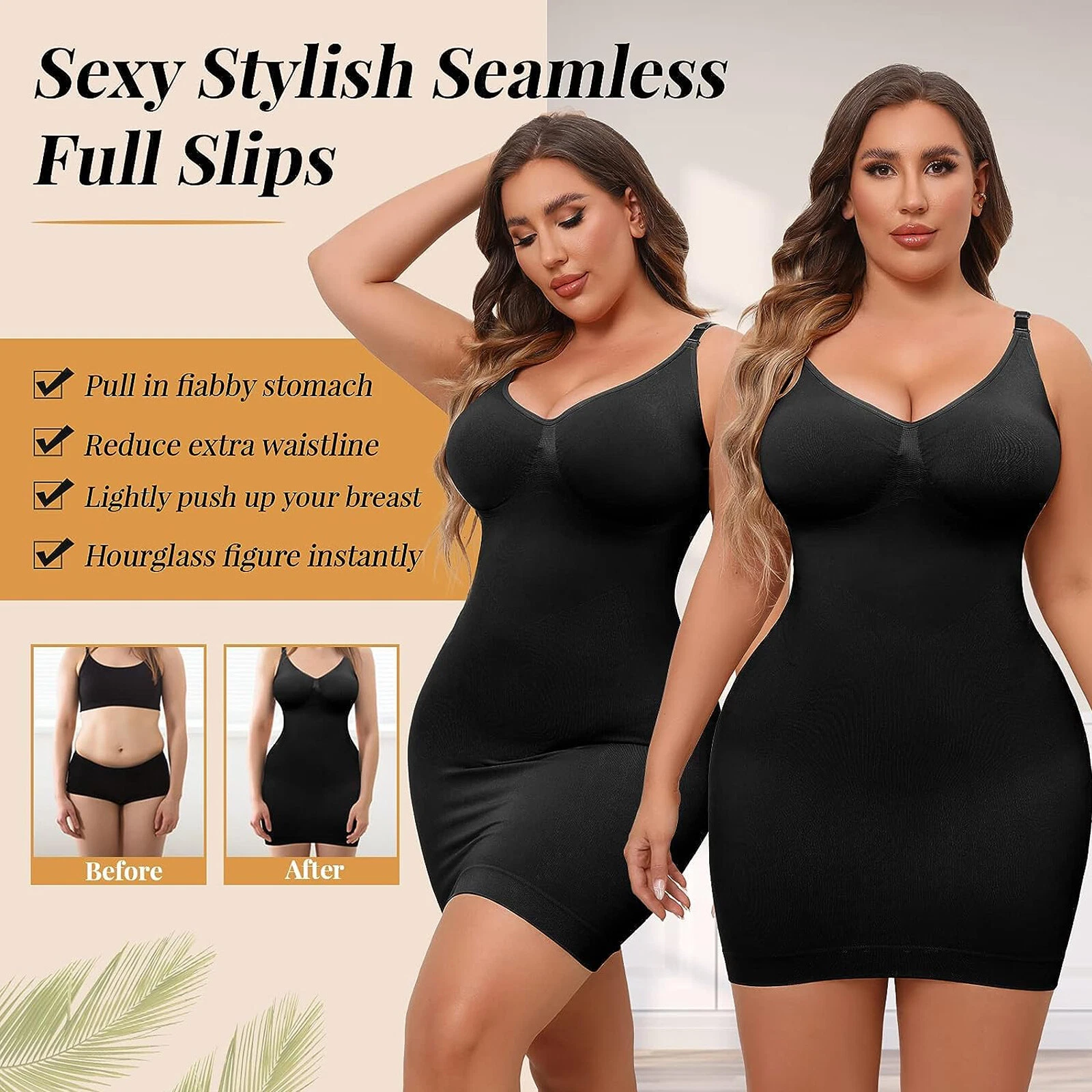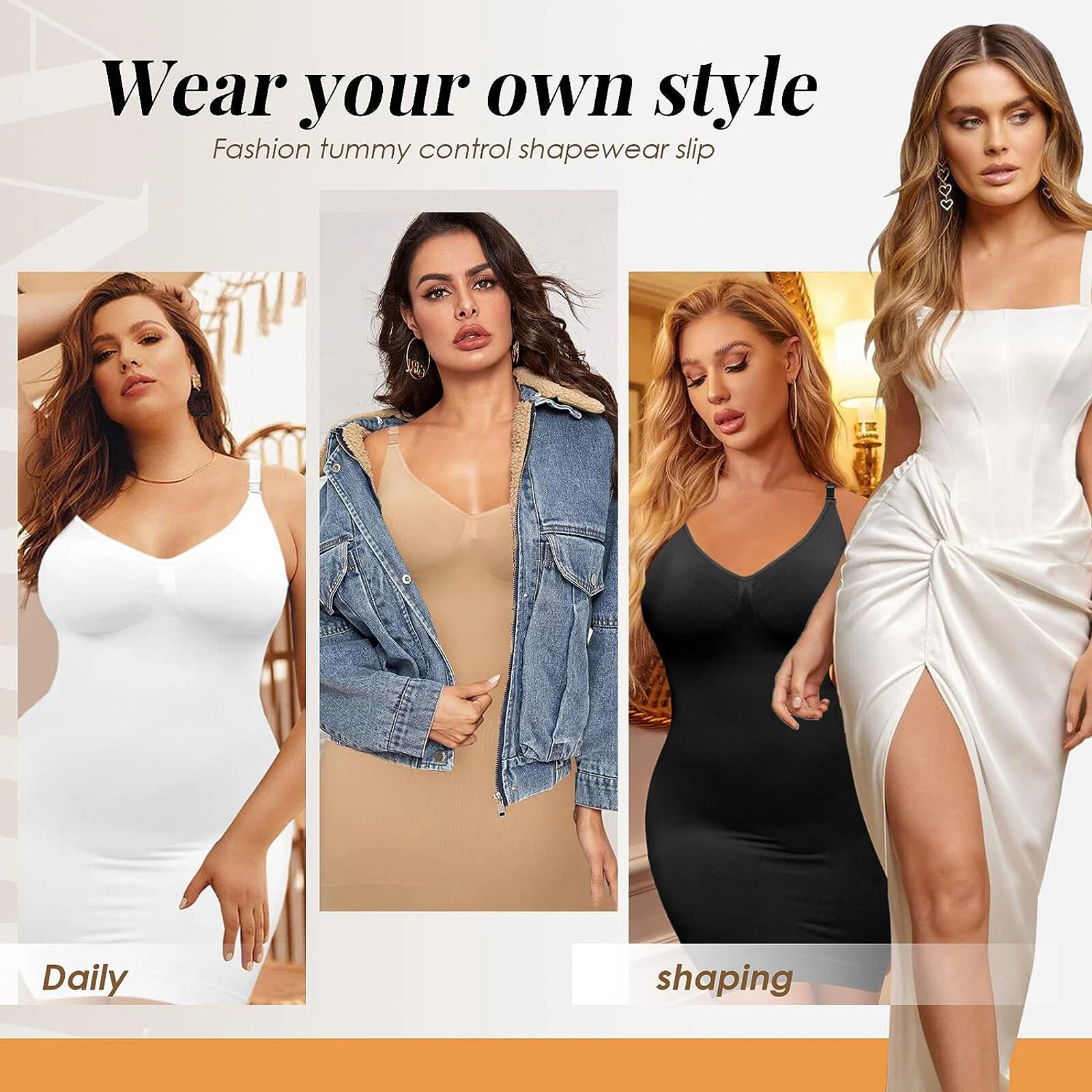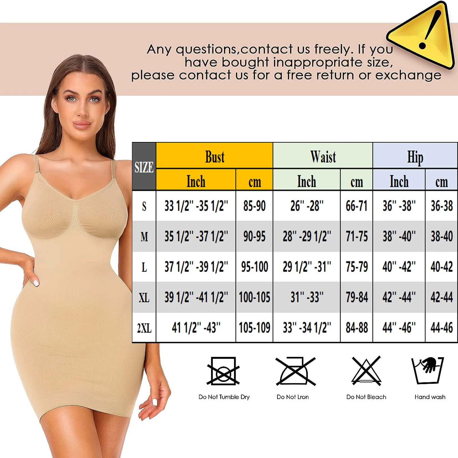 SOFT SMOOTH & BREATHABLE. The slimming slips for under dresses are made of super elastic fabric, it is comfortable, soft, and breathable to snugly fit your body. You will notice that it changes the way you look, helps you create a slim and smooth body curve. When you wear it inside, please don't worry about getting too hot and sweaty, because its very cool and breathable fabric is enough suitable for all-day comfort, ideal for daily life.