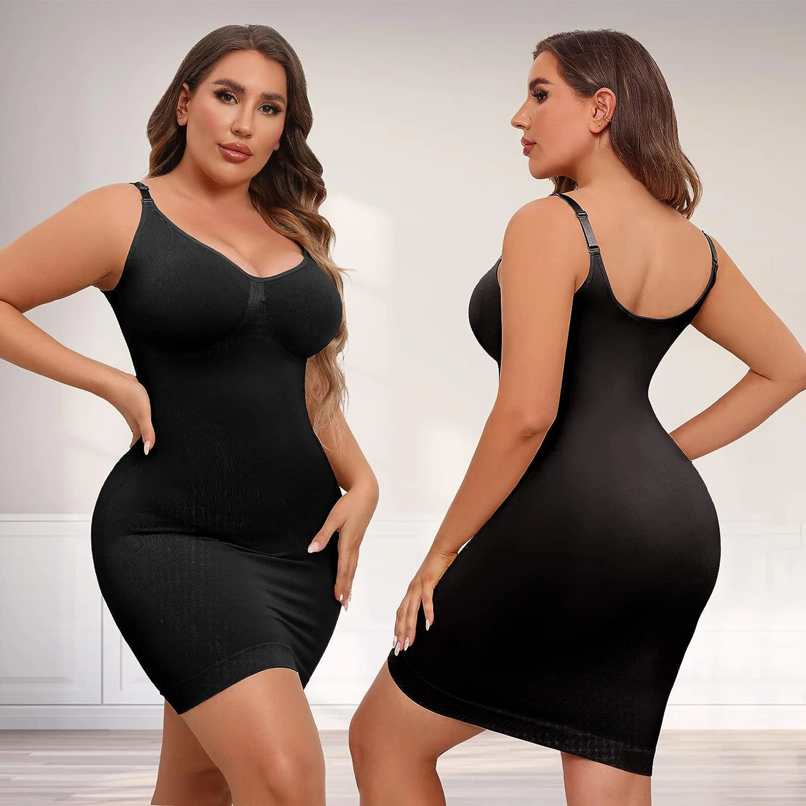 INVISIBLE UNDER DRESSES. Our tummy control dresses for women hugs your body perfectly, helps smooth the tummy, waist, hips and back. No one knows you wear a shapewear bodysuit, but they will notice your slim and natural look. There is no any boning to poke through like a corset would, so you actually can wear it all day. Besides that, low-back design perfect for wearing under open back tops and dresses, you can wear this slimming dress body shaper with a variety of matching ways for outings.
