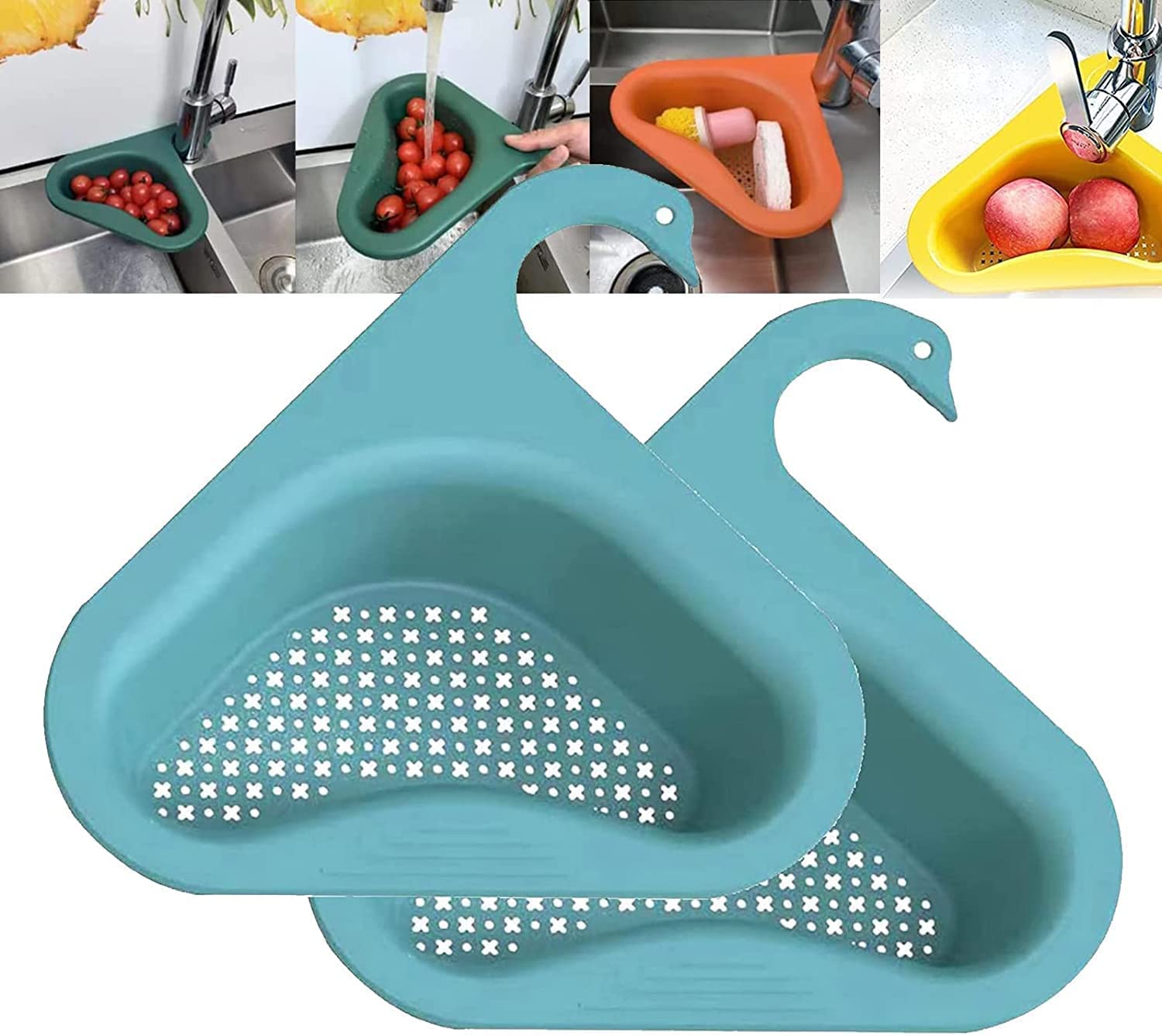 【Unique Design】The design of the perfect combination of triangle and swan shape makes full use of the space in the corner of the sink and does not occupy the extra space in the sink. The appearance is very lively and lovely, the moisture is quickly discharged through the pores, and it is not easy to block.