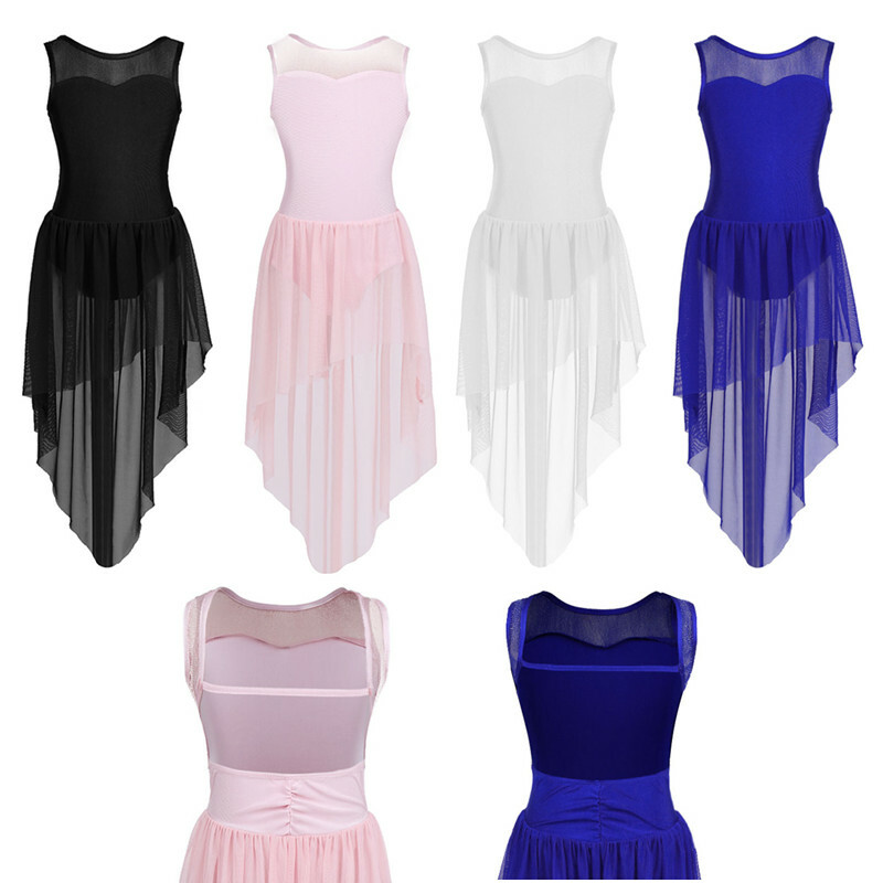 Ballet dance leotard dress is made of polyester and chiffon material, hand wash.