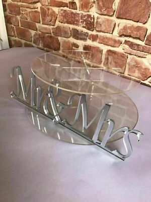 Ideal for Wedding cake displays, 2 tiers and a laser cut mirror solgon Mr & Mrs Him & Her and other variations.