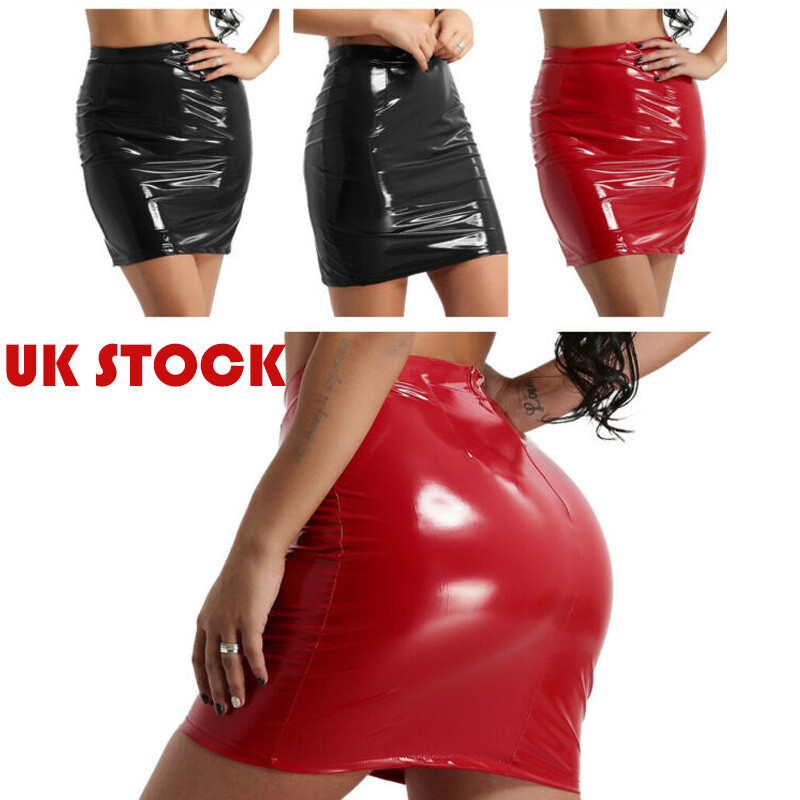 Freebily Women's Stretch Shiny Glossy Mini Skirt Elastic Waistband Pencil Skirt