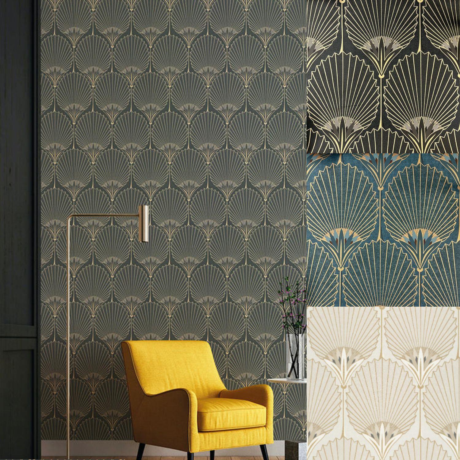 Grandeco Nile Palm Art Decor Cream Black Or Teal Wallpaper Vinyl