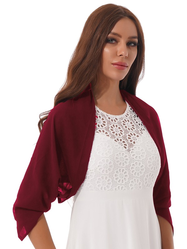 Women Chiffon Bolero Shawl Wraps One Button Shrug Evening Dress Cape Cover Ups
