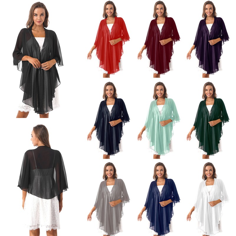 Womens Sheer Cape Shawls One Button Chiffon Shrug Wraps Cover Ups for Wedding Party Dress.
