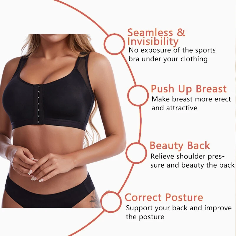 Wide stretchy straps with adjustable hooks and eyes prevent slipping off, offer you needed support and stability.