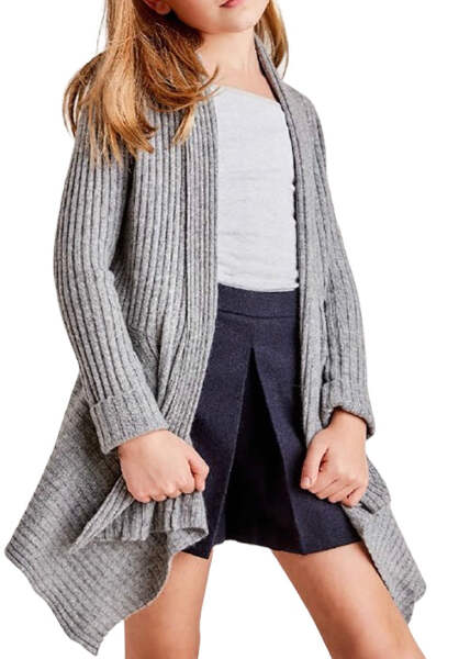 Autumn Cashmere Kids girls heather gray ribbed, open cardigan sweater size 8.