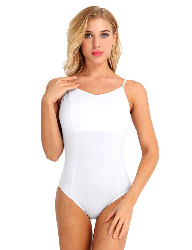 Women Cross Cross Back Camisole Strap Ballet Dance Leotard Bodysuit Built in Bra