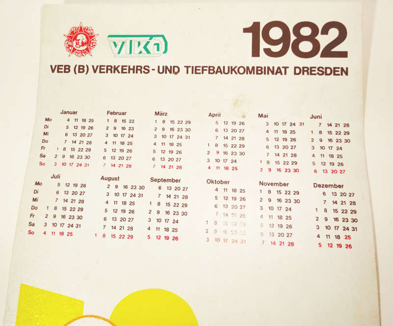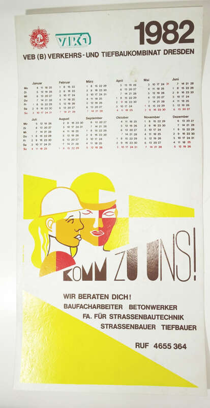 DDR Kalender 1982 VEB Verkehrs und Tiefbau Kombinat Dresden Reklame