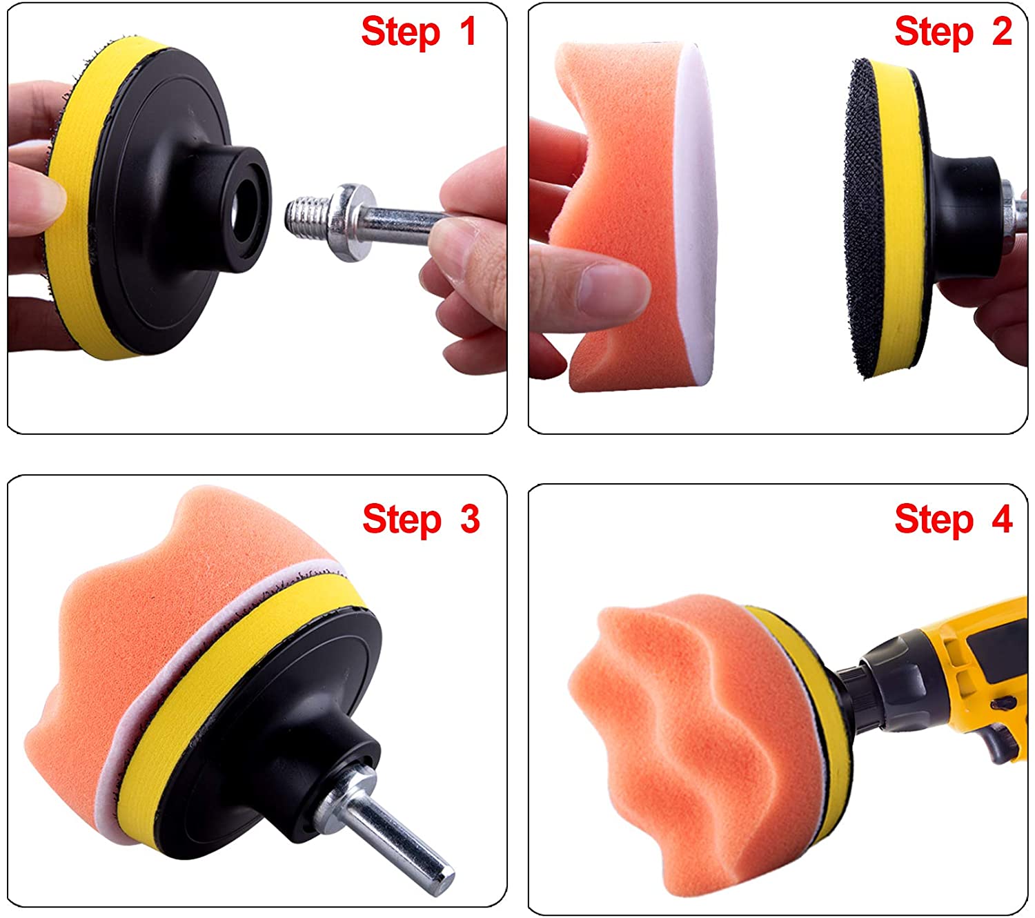 They are lightweight tools that are easy to assemble, thanks to the adhesive backing, you can change these pads just in seconds. The back of the suction disk has magic tape, so you can change the tool in a few seconds and get quickly started.