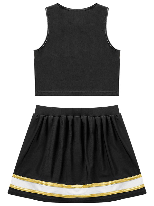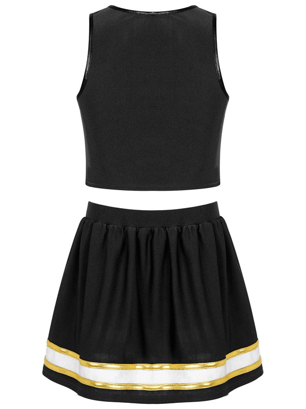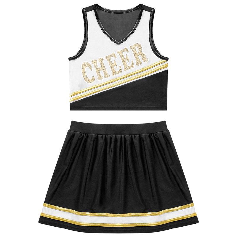 The crop top features with sleeveless and v neckline, letter CHEER print in the front, double bronzing cloth striped decorated.