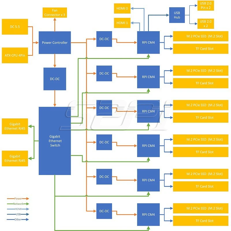 DeskPi Super6C Raspberry Pi CM4/CM5 Cluster Mini-ITX board 6 RPI CM4/CM5 supported
