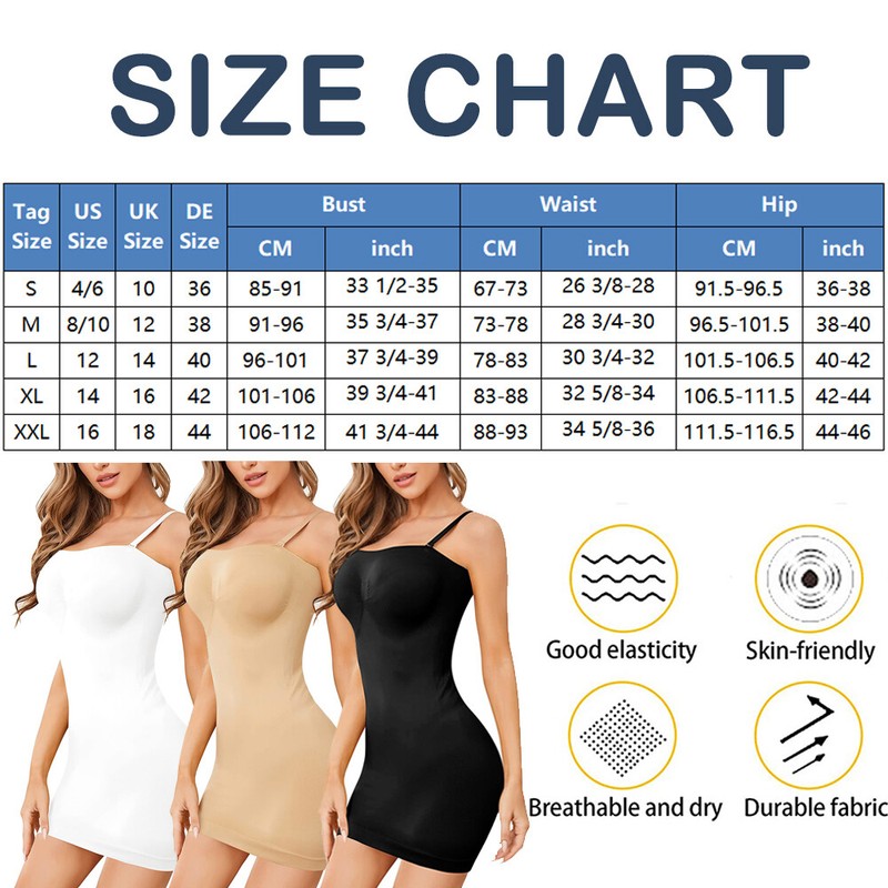 - ✅【3D Breast Design】-- Provide natural coverage for the chest area, no more pressure to your bra and show your chest curve. Medium Comfortably and breathable. Women's strapless full slip made of 85% nylon 15% spandex, keeps your skin healthy by avoiding bindings and marks.