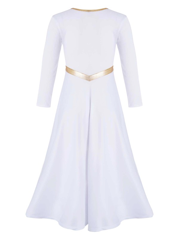 Girls Metallic Liturgical Praise Dance Dress Long Sleeve Lyrical Church Costume
