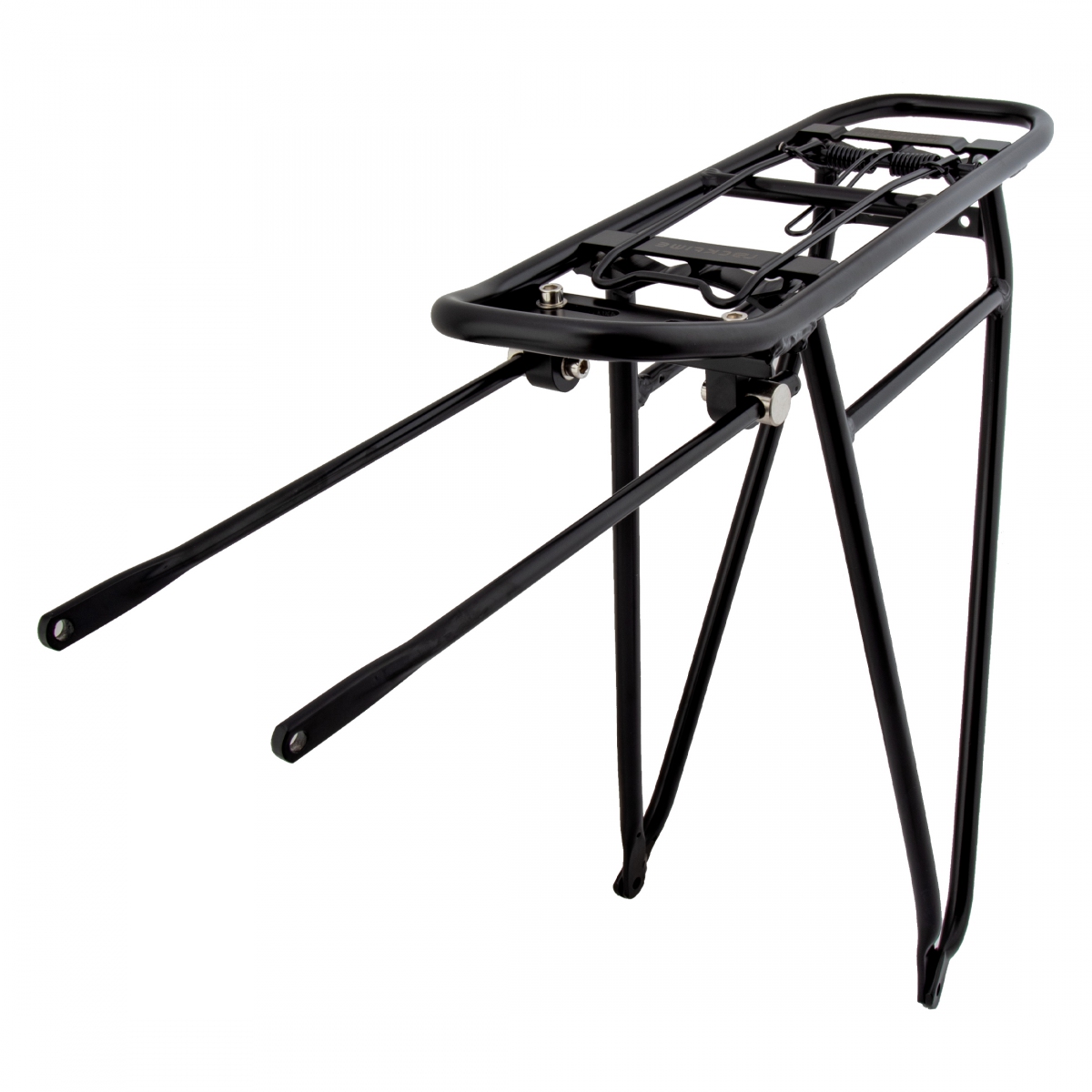 Constructed from high-quality, lightweight aluminum alloy, the Racktime Eco Tour Rear Rack offers exceptional strength and corrosion resistance. Its robust black finish provides a sleek, modern look while ensuring longevity in various weather conditions. The spring-equipped design enhances stability, ensuring your cargo stays secure during rides.