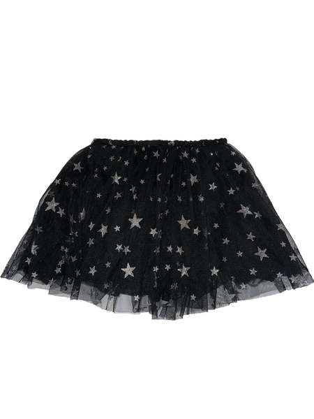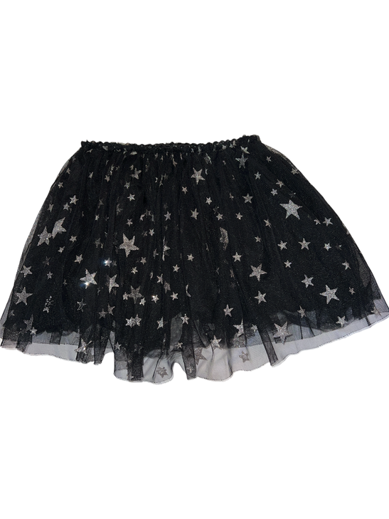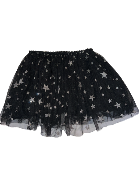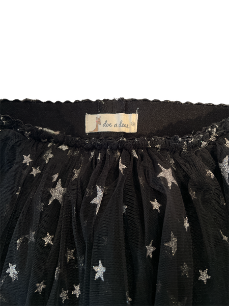 Doe A Dear girls black tulle, fully lined tutu skirt with silver glitter stars all over size 5.