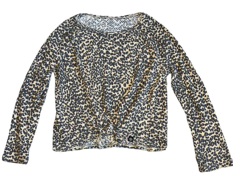 Treasure & Bond girls soft cozy waffle knit leopard top with knotted hem and loose sleeve size M(8-10).