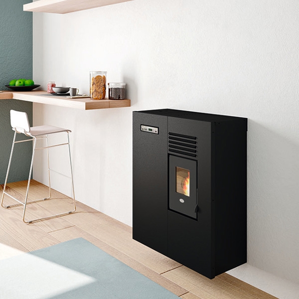 Klein, praktisch, klein, geeignet für die Installation auf engstem Raum, auf dem Boden liegend oder an der Wand hängend. Der Pelletofen Eva Calòr Matilde 4,5 kW löst intensivere Kälteprobleme in kleinen Räumen, die vom System nicht erreicht werden zentral, das heißt, es heizt Hütten, Bungalows etc. schnell auf