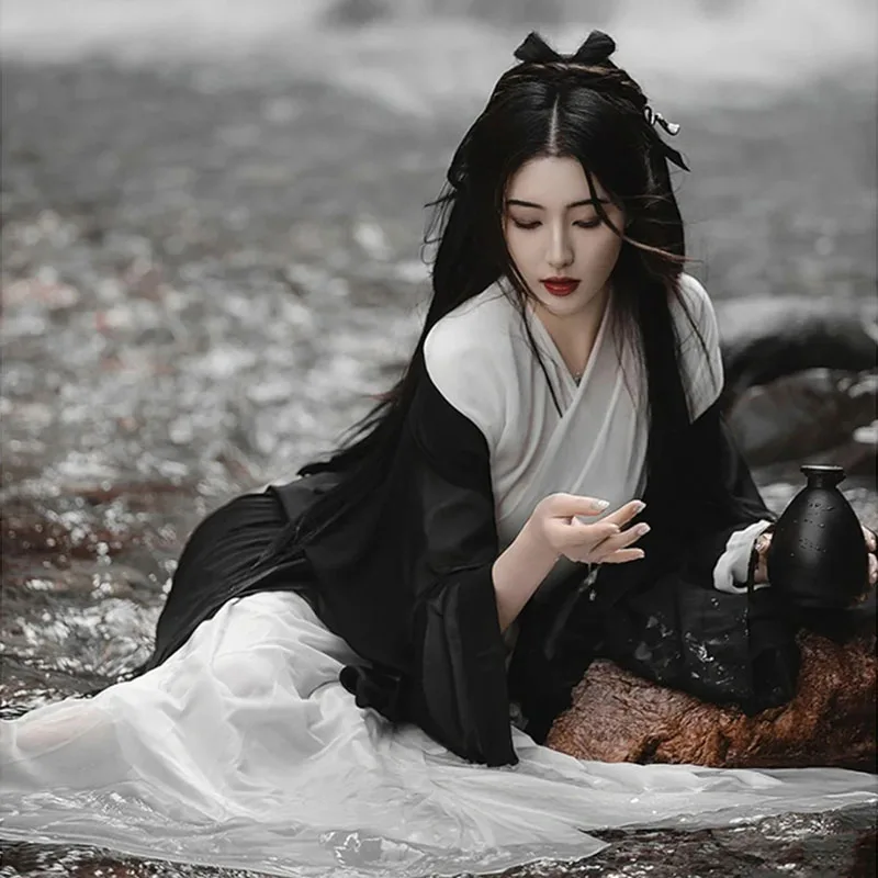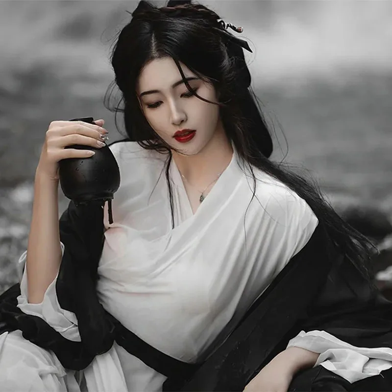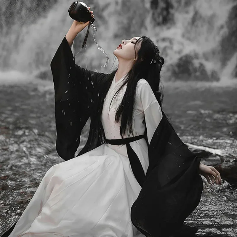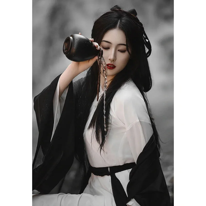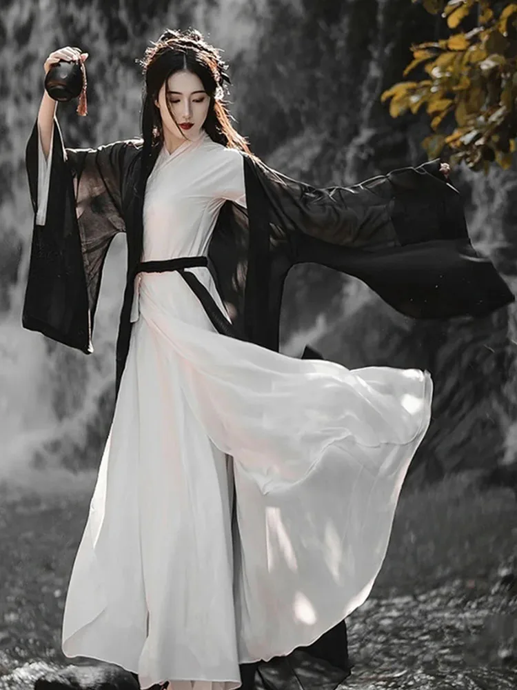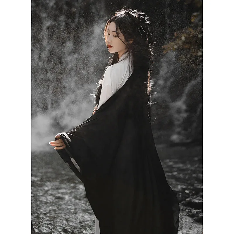 Black Wuxia Robe Unisex Men Women Hanfu Traditional Dress Fairy Ancient Chinese Costume Asian Clothes Folk Dance Festival Outfit