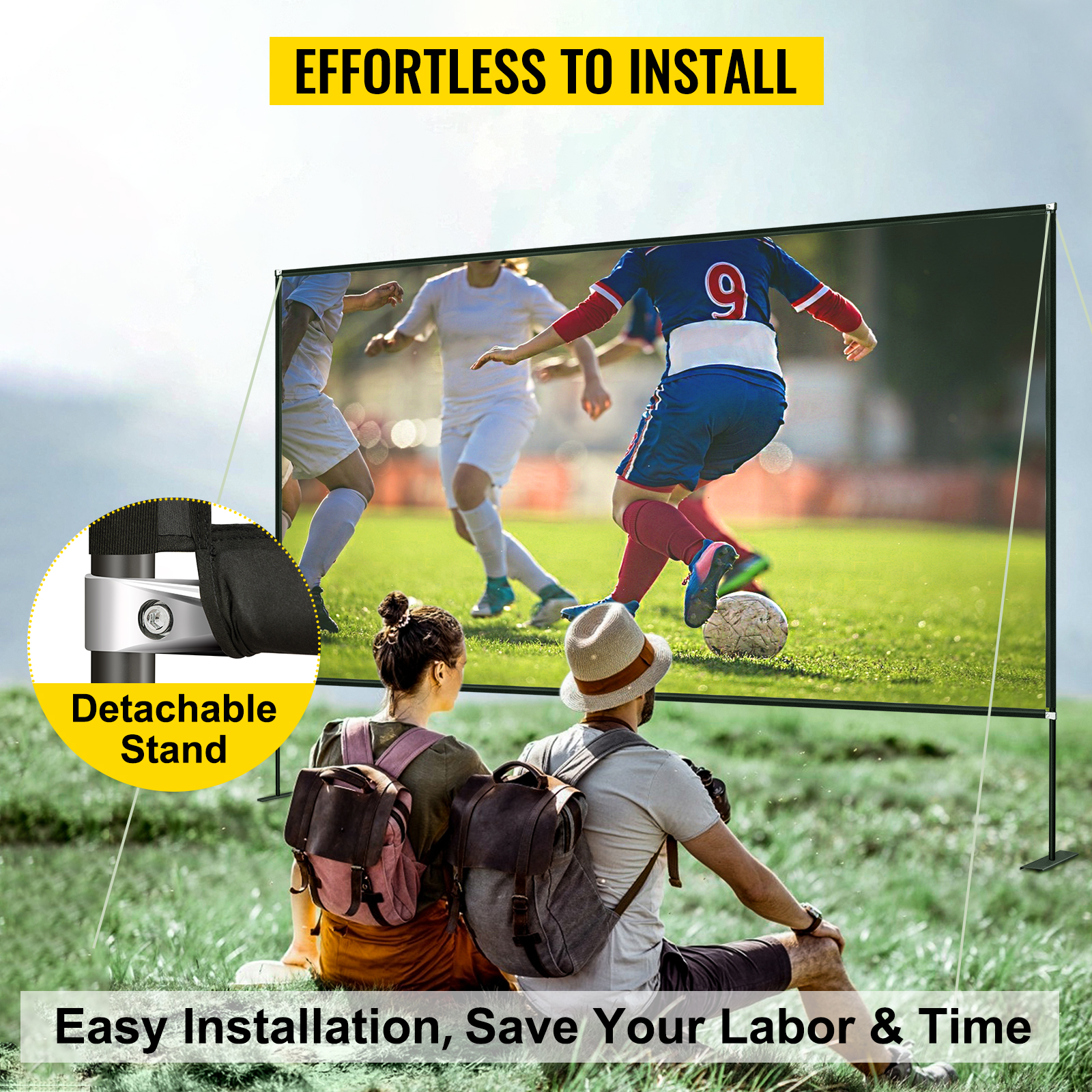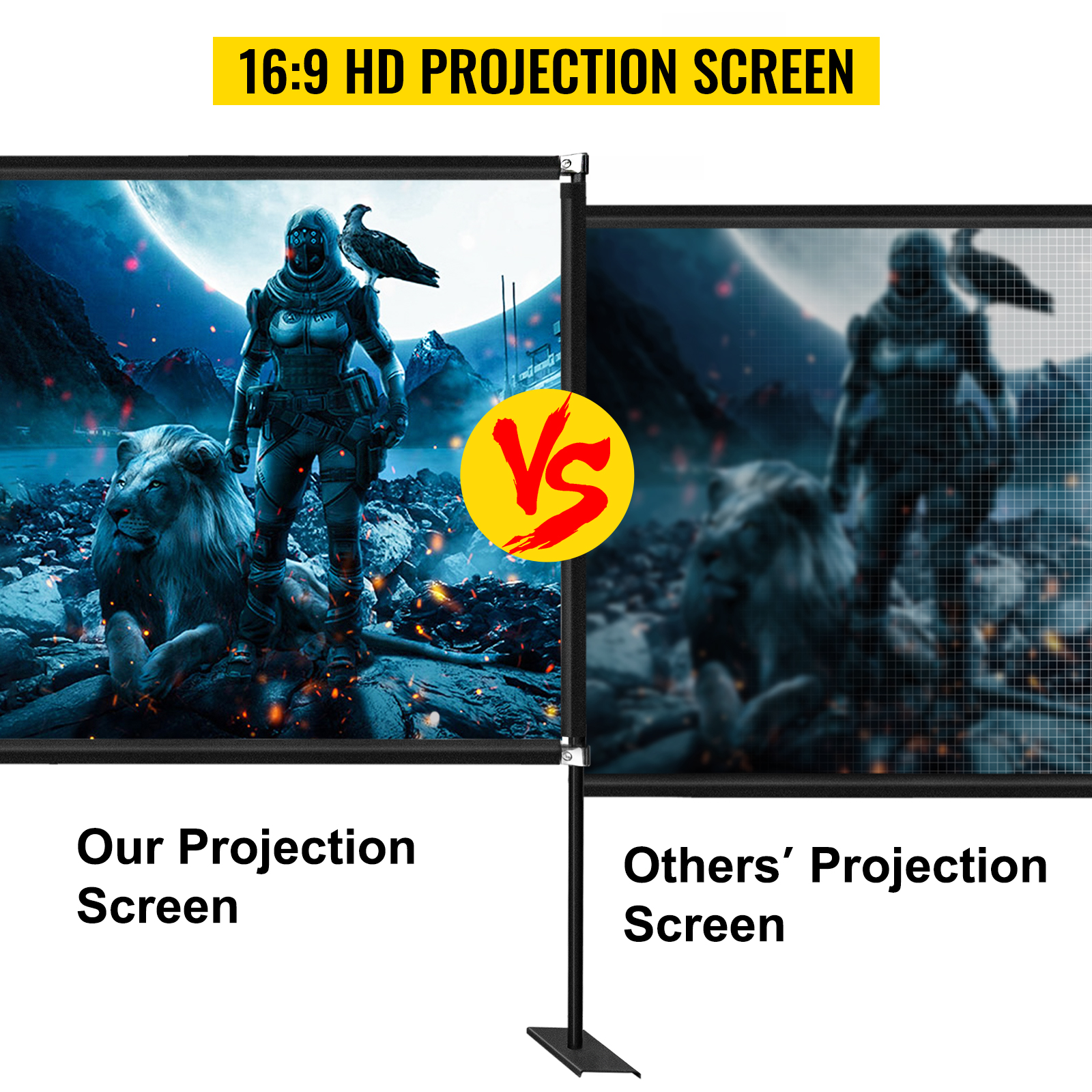 The projector screen with stand is made of delicate craftsmanship. The screen is concise and attractive. The optical high-definition coating material can keep superior color display, which makes movies more natural.