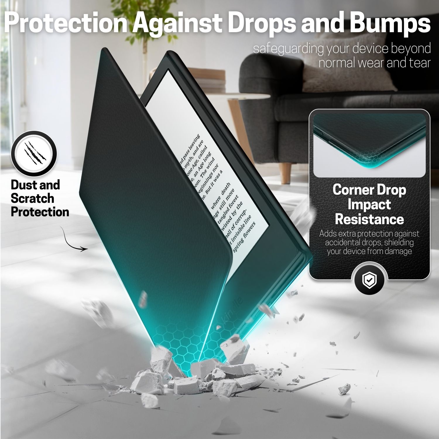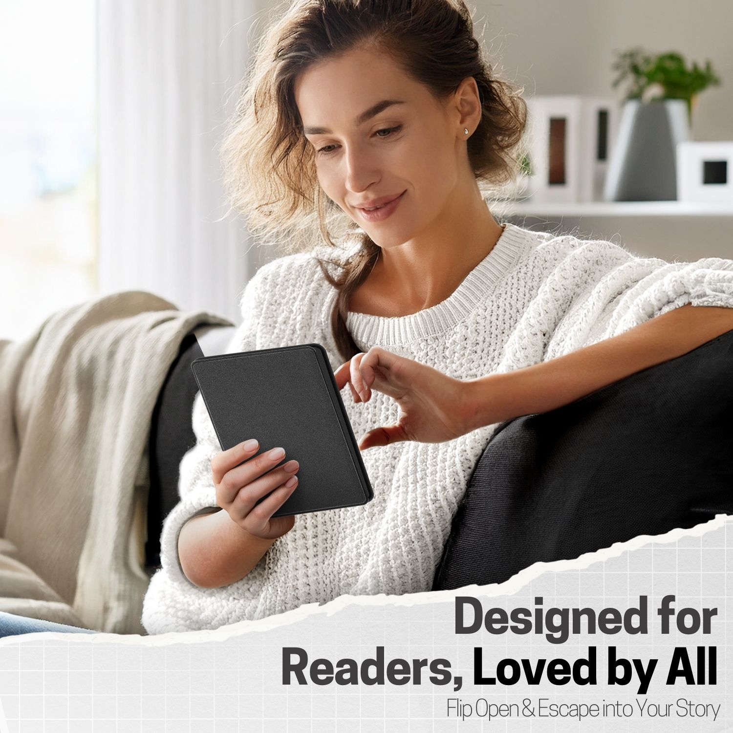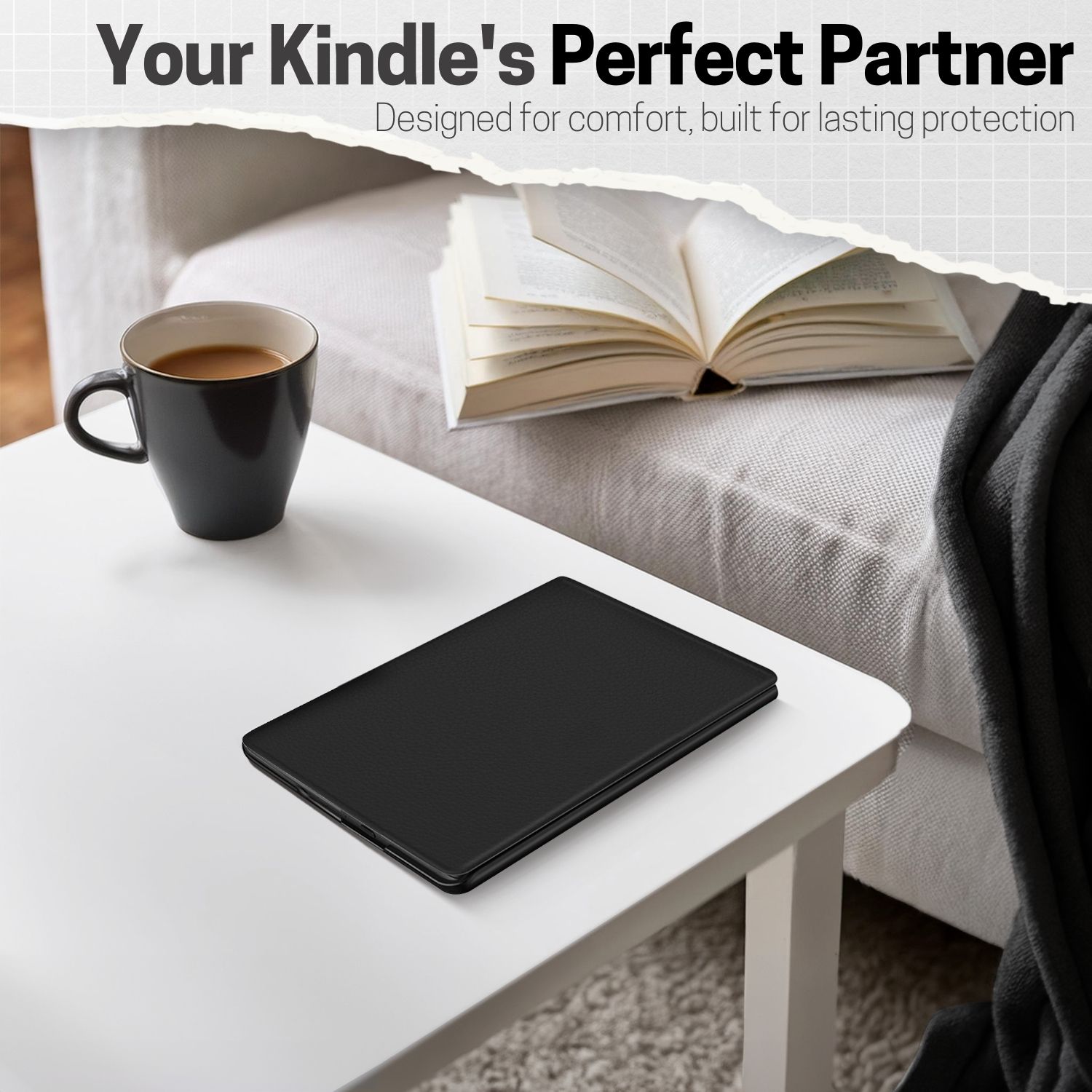 Slim, form-fitting cover to perfectly fit your all new Kindle 2024 and 2022 (11th Generation) and provide full front and back protection. The cover is easy to securely attach and remove, and folds back for easy one-handed reading. It automatically puts your Kindle to sleep when closed and wakes upon opening, making it easy to jump back into your book. Made of durable synthetic leather, this case is designed to be lightweight and protective, protect your device without adding unnecessary bulk, so you can hold it for hours of reading with minimal effort. With the nylon woven interior, the cover protects your Kindle and keeps the screen clean without adding bulk, making it perfect for taking your Kindle wherever you go.Feature: