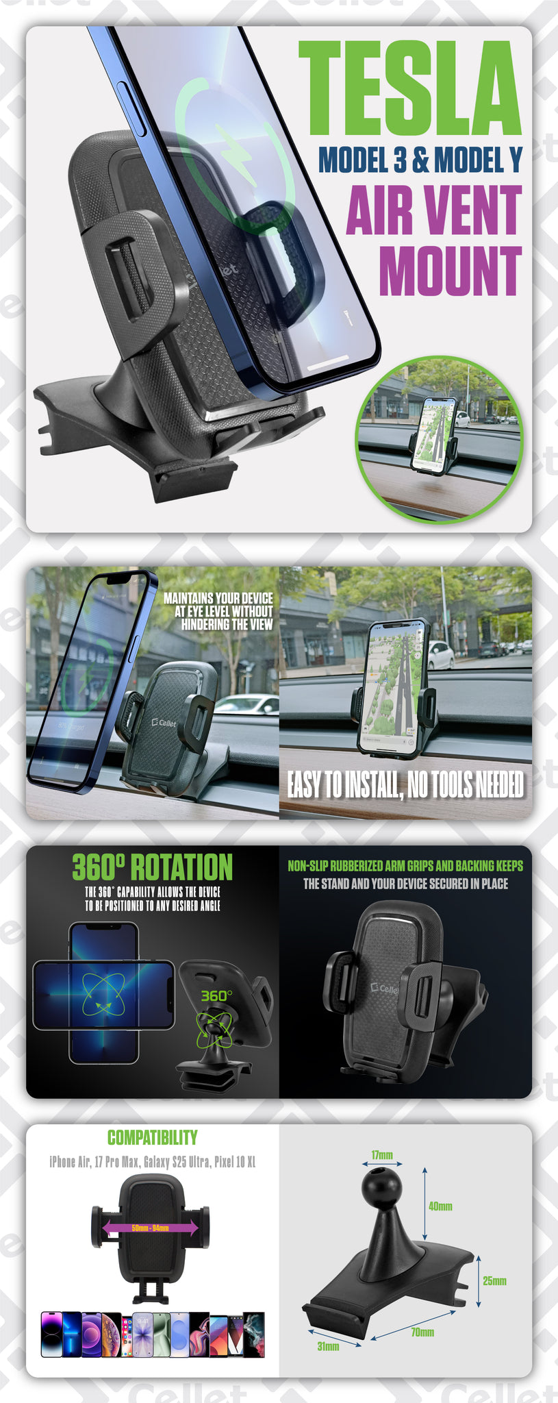 tesla model 3 phone mount, tesla model y accessories, tesla interior mount, car phone holder vent, tesla dashboard clip, tesla organizer gadget, universal phone mount tesla