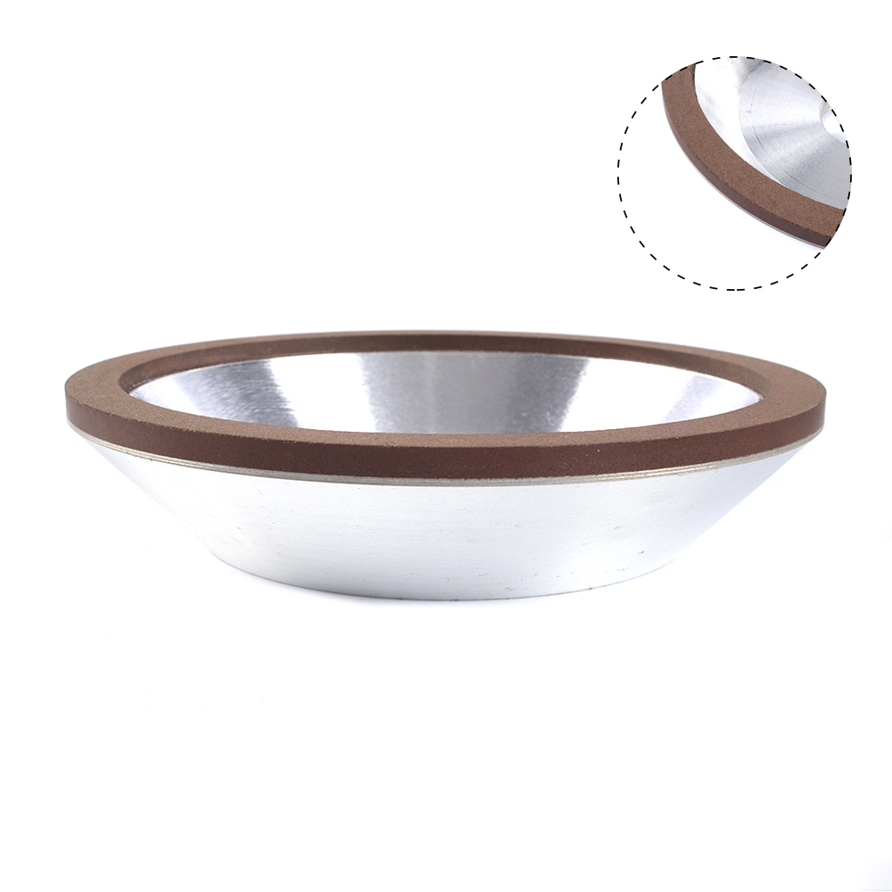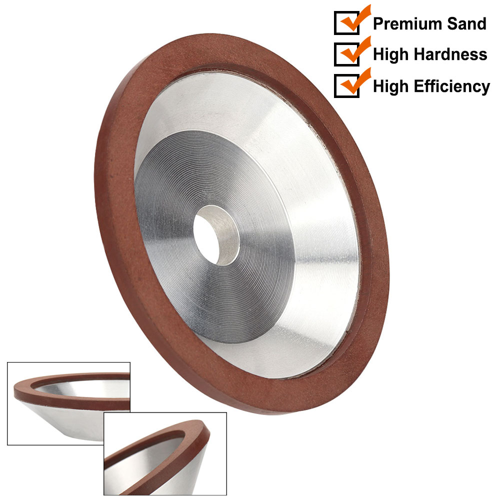 1.Resin bond diamond sand grinding wheel, a tapered side cladding type. Green sand layer are sharper than red sand grinding, and the surface hardness is lower than red sand.