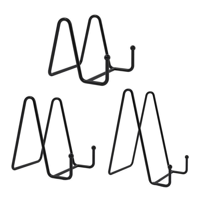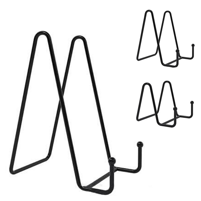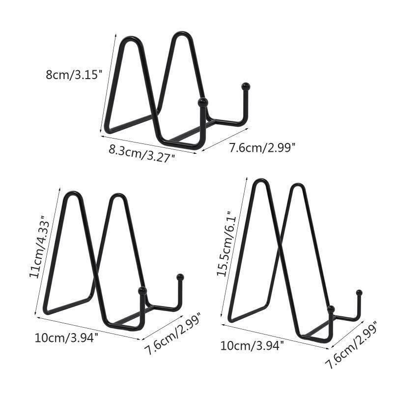 The plate display stands has a matte black powder-coated finish and wrought iron construction, strong enough to hold decorative plates, commemorative plaques, photo frames, postcards, pictures, book, canvas, etc.