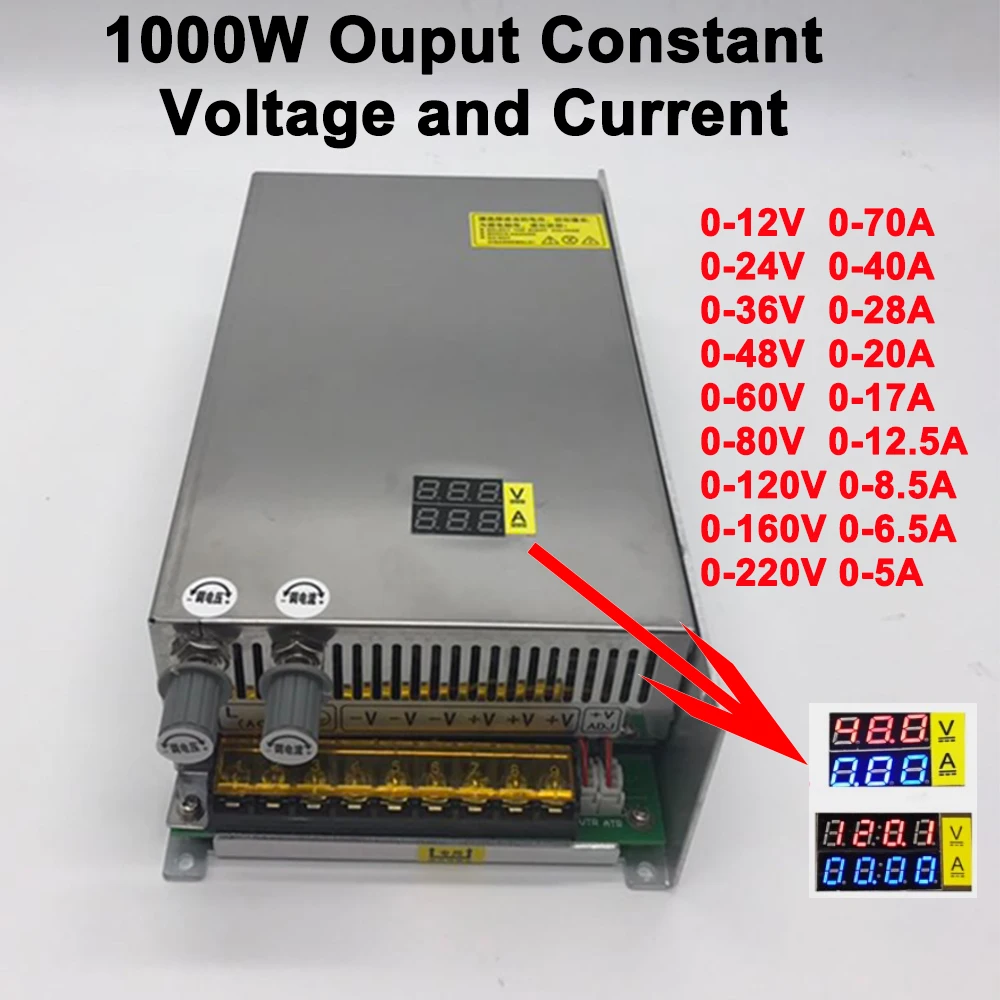 Input AC 110/220V output DC0-220V 0-70A 1000W Constant Current Voltage Adjustable DC voltage stabilization switching power supply with digital display