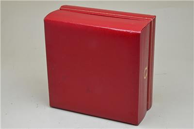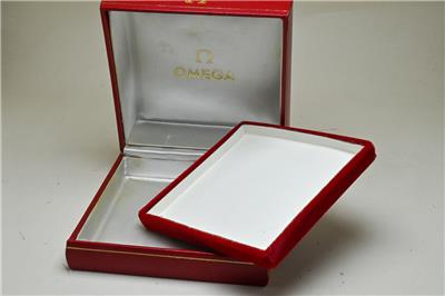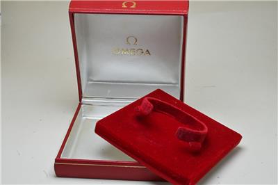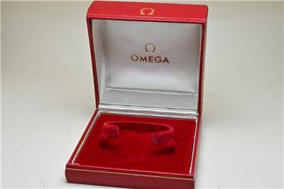 Here we have for sale a used Omega red vintage watch box that is complete and the hinges need attention as there is no click or hold, but the box stays open. The inner red box is in used condition, with marks to the top, bottom and edges, with some material coming away at the back. The inside has some marks and wear and the box measures 103 x 103 x 57mm. The bottom red watch holder section is in good condition nand lifts out. The bvox is marked Made in Switzerland 5501 to the base.