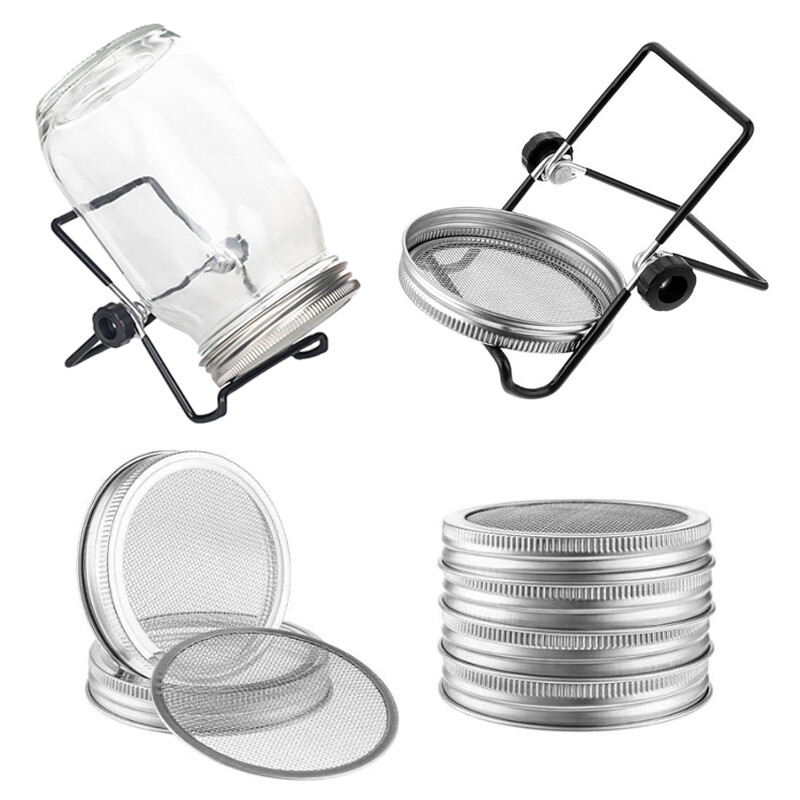 Seed Sprouter Kit- Sprouting Mason Jar With Stainless Steel Strainer Lid- Stand