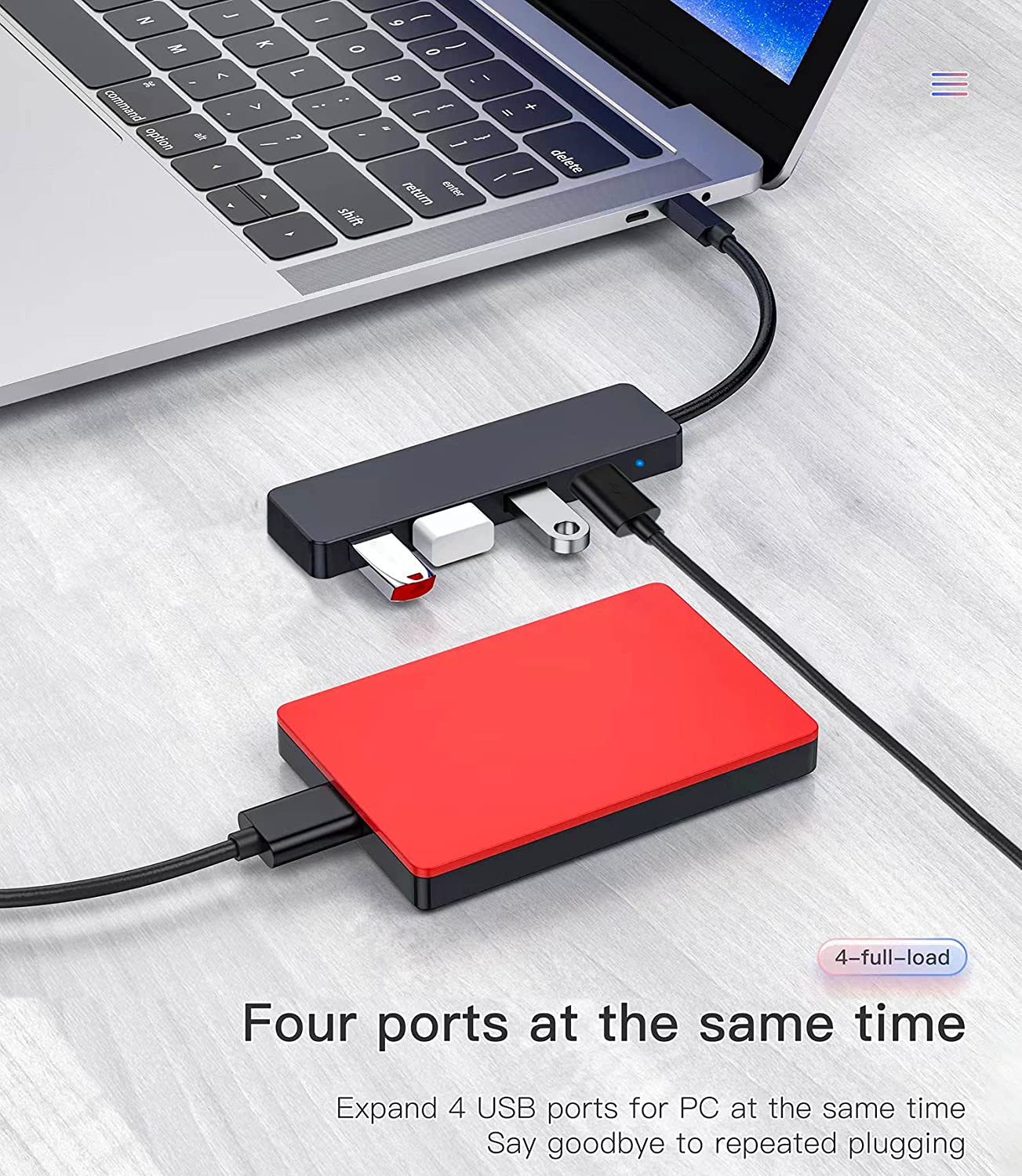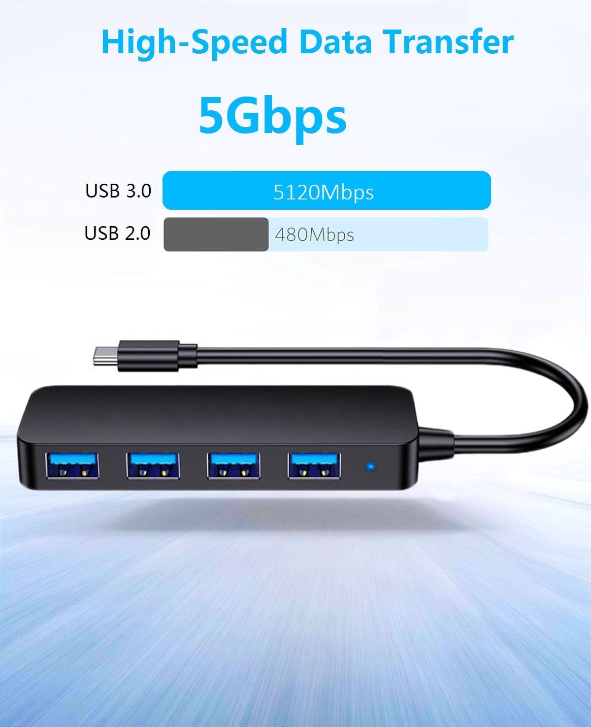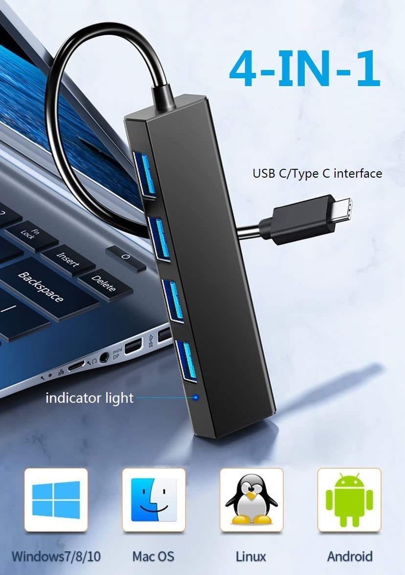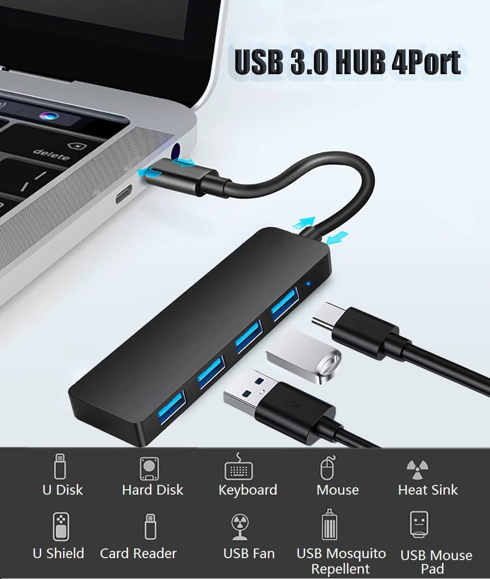 USB C 3.0 Hub 4 port is Easy to Connect and Widely Support Most of Your Usb Devices. Such as Flash Drives, Hard Drives, Keyboards, Mice, Printers, MP3 Players and More. Small Usb Hub Compatible with Laptop, MacBook Pro and More USB Type C Devices.