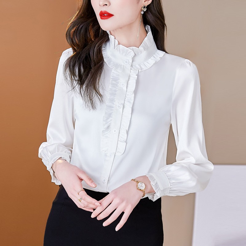 Long sleeve t-shirt for women, simple but generous, turtleneck, solid color, cropped length.