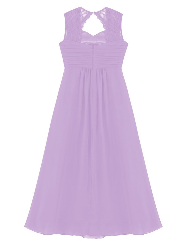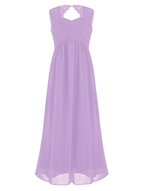 Kids girls lace patchwork chiffon party dress sweetheart lace strap ruched cut-out back high waist floor length dress.