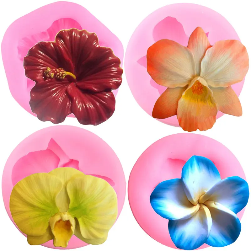 3D Flower Silicone Molds Orchid Rose Plumeria Fondant Mold DIY Cake Decorating Tools Cupcake Topper Chocolate Candy Clay Mould