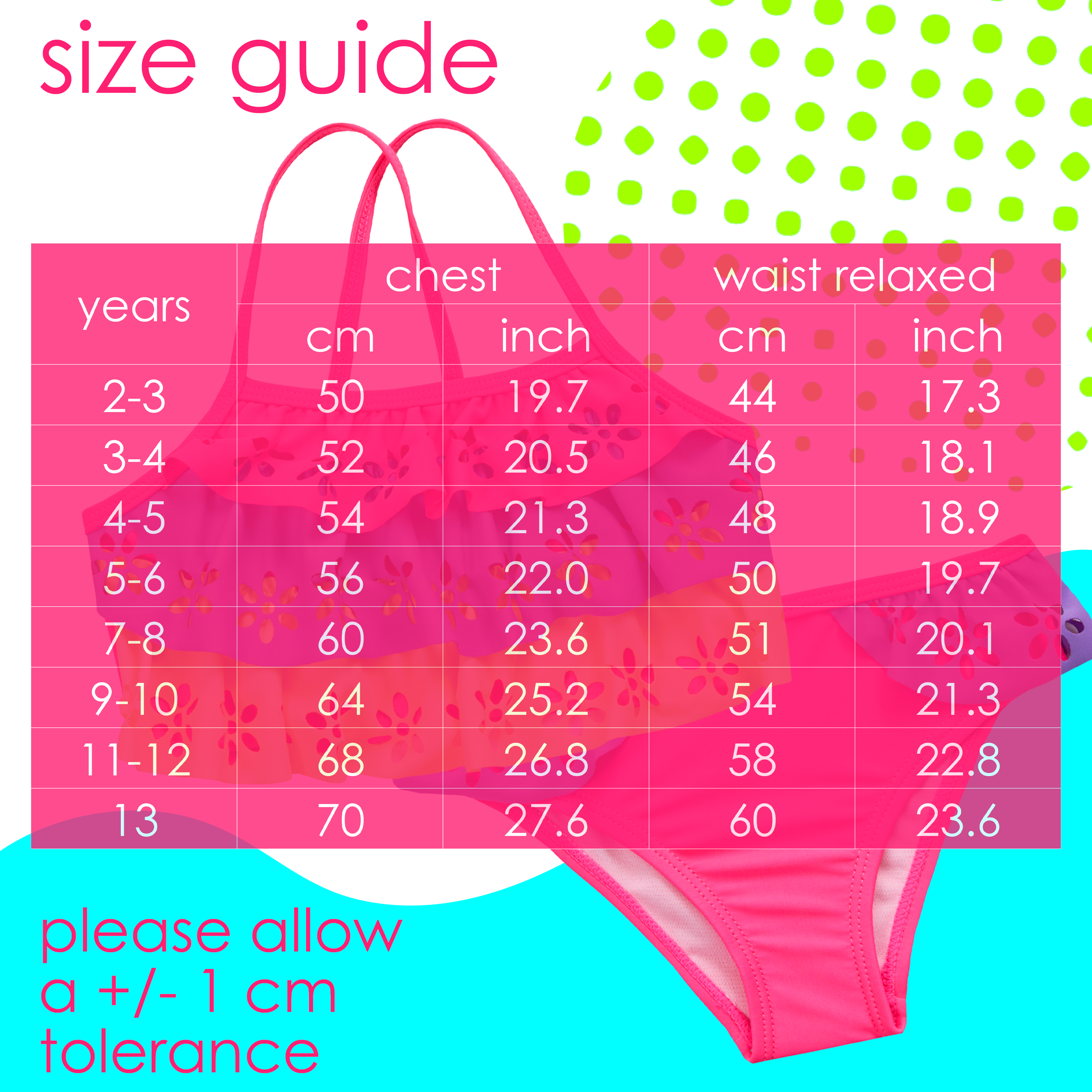• GIRLS SWIMSUIT - This sets are sure to put a smile on your little girls face they are perfect for making a splash! Available in sizes 2-13 years.