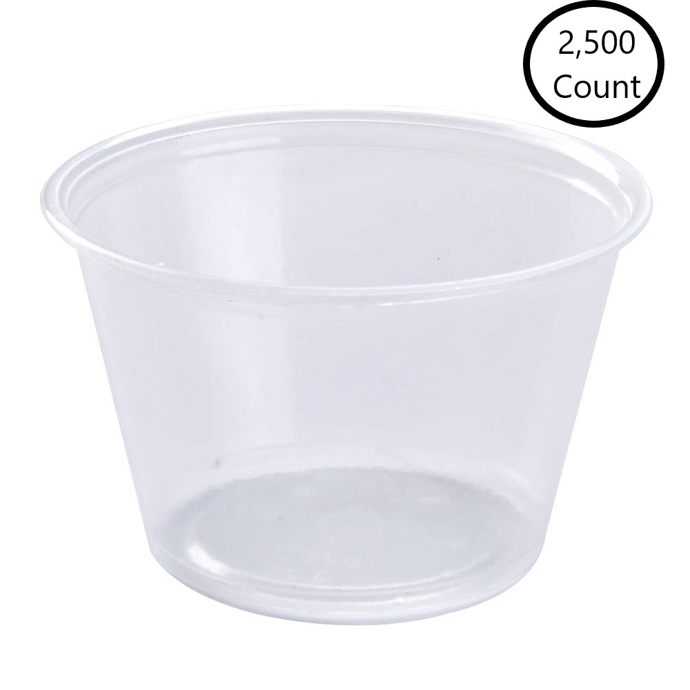 Fabri-Kal's portion cups safely transport liquids, side dishes and condiments with a secure, leak resistant lid fit. Available in translucent or black, for an upscale presentation. 3 common lids fit the entire portion cup line. Choice of crystal clear and translucent recessed lids to accommodate desired presentation. Lids are stackable to aid in packing, transport and storage of lidded containers. Smooth rolled rims are leak resistant, with snap-fit lid application and removal. No flavor or odor transfer. Available in 8 sizes, ranging from 0.75 - 5.5 oz. 2500 Count