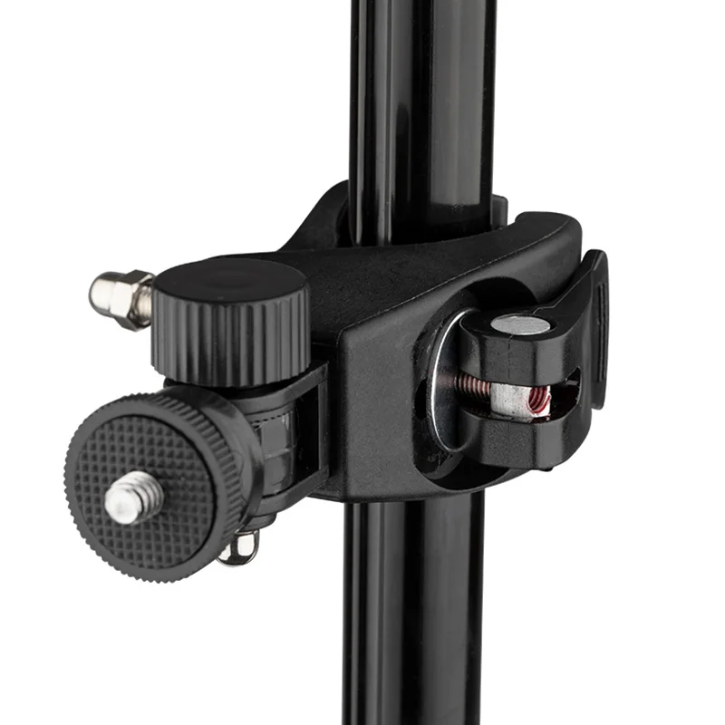 With standard 1/4 threaded head for Cameras, DVR, and more. It works for any pipe or bar that is up to 1.57 Inches in diameter.