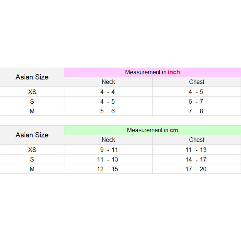 S: Neck Circumference 11-13cm,Chest Circumference 14-17cm