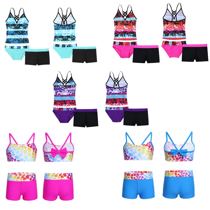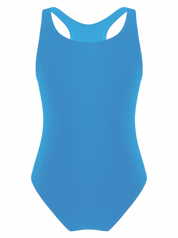 Girls Solid Color Athletic One Piece Swimsuit Racer Back Swimwear Bathing Suits