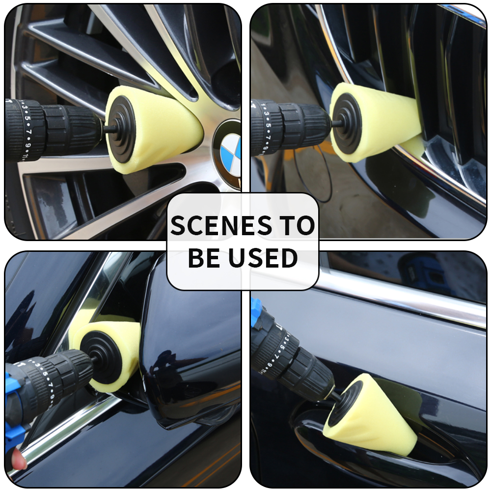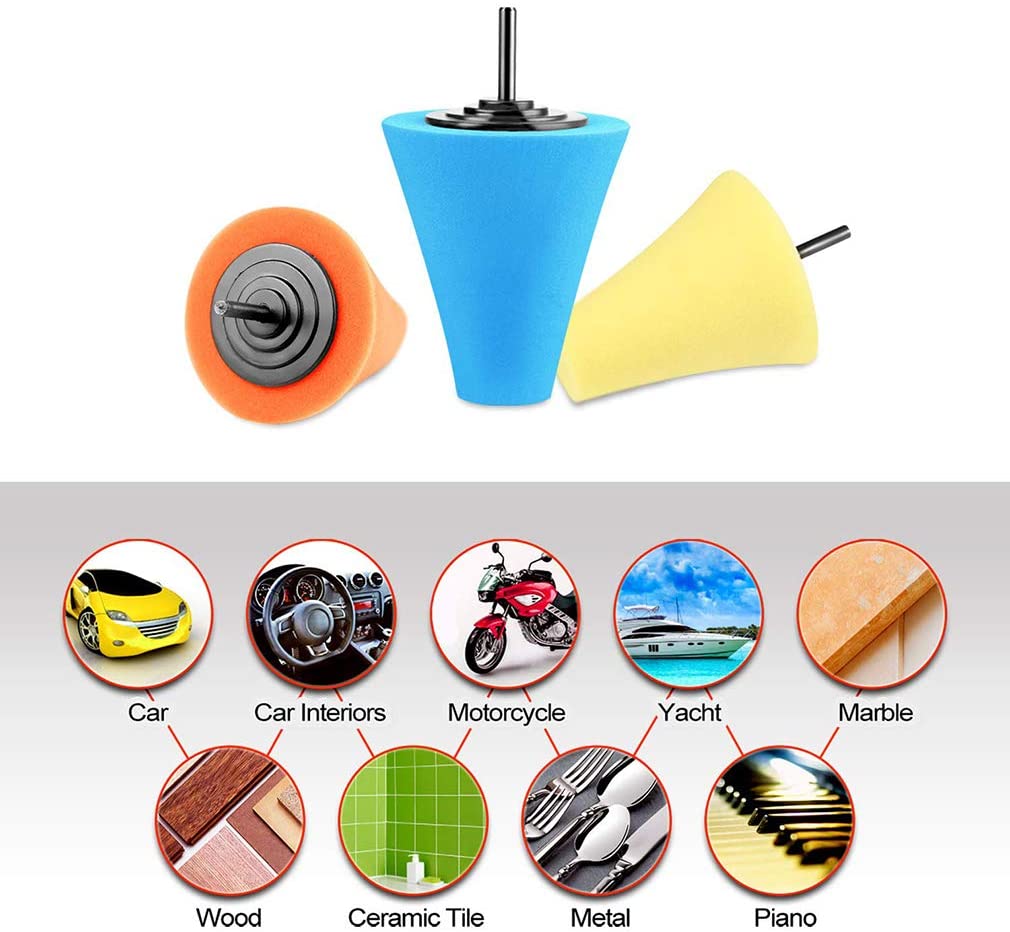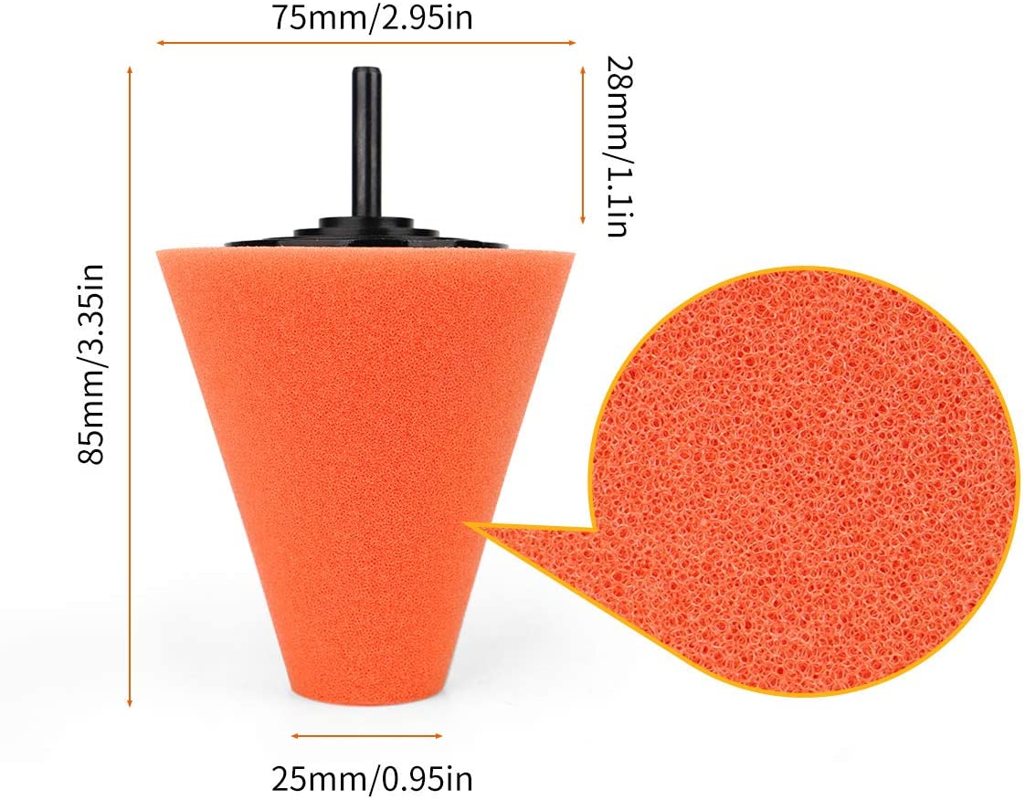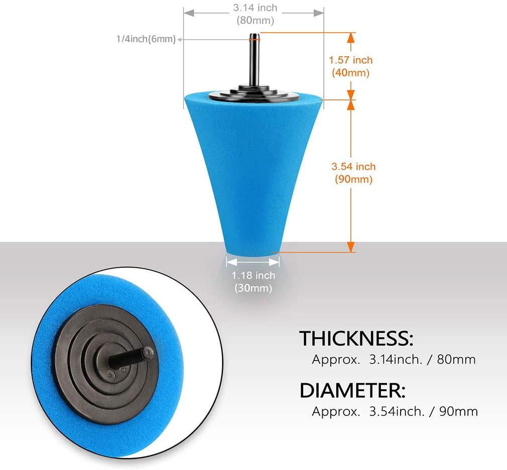 ◆Automatic Wheel Polishing Sponge Taper designed to easily handle uneven surfaces of the polishing wheel, the taper is perfect for polishing wide curved surfaces, great for getting into tight, hard-to-reach areas, combined with your favorite metal polish, it can be used in shorter Gives you a mirror-like glow in time.