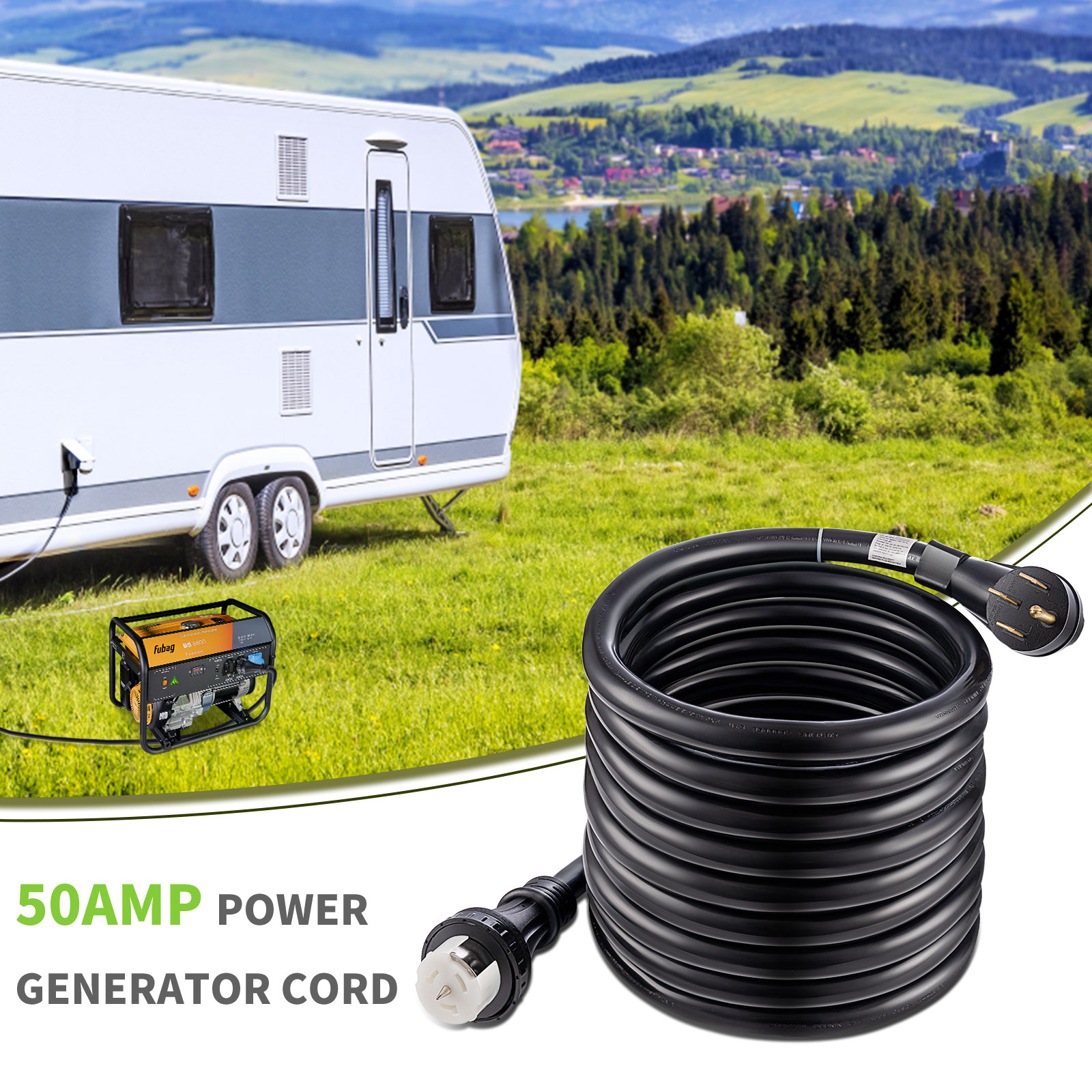 heavy-duty 50 Amp 125/250 Volt power cord is compatible with generators