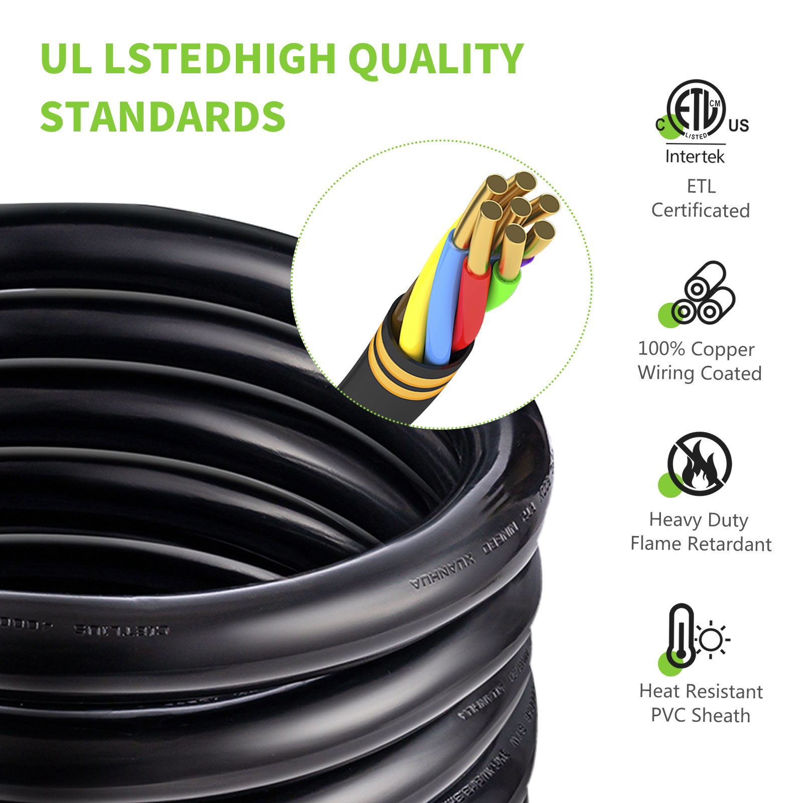 【25FT Power Cord 】-The 25FT length generator cord is suitable for long-distance operation. Possessing the capacity of STW, this 50 amp generator cord can be used indoors and outdoors in all weather and seasons.