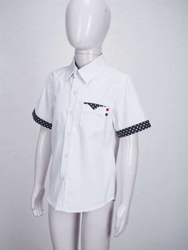 Simple solid color design, a little polka dots print in cuffs, collar and pocket, easy to match, very daily.
