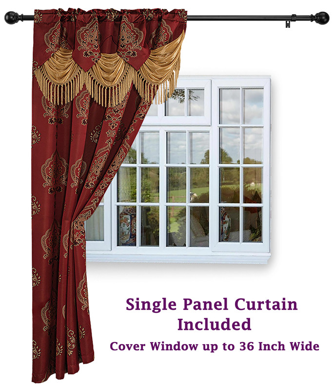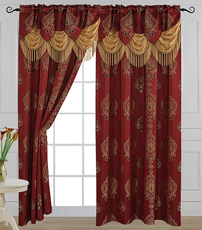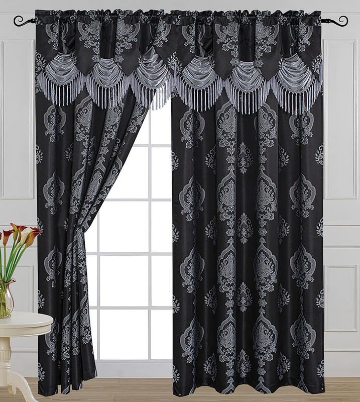 Alexa Luxury Jacquard Curtain Panel with Attached Waterfall Valance 54" X 84"