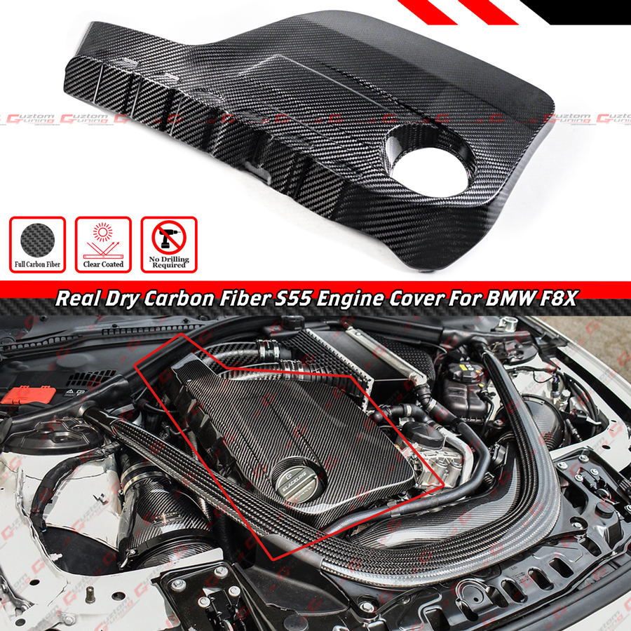 - Dresses Up Your Engine Bay Instantly With This Luxury Carbon Fiber Cover And Gives It A Unique Custom Look To Your BMW.